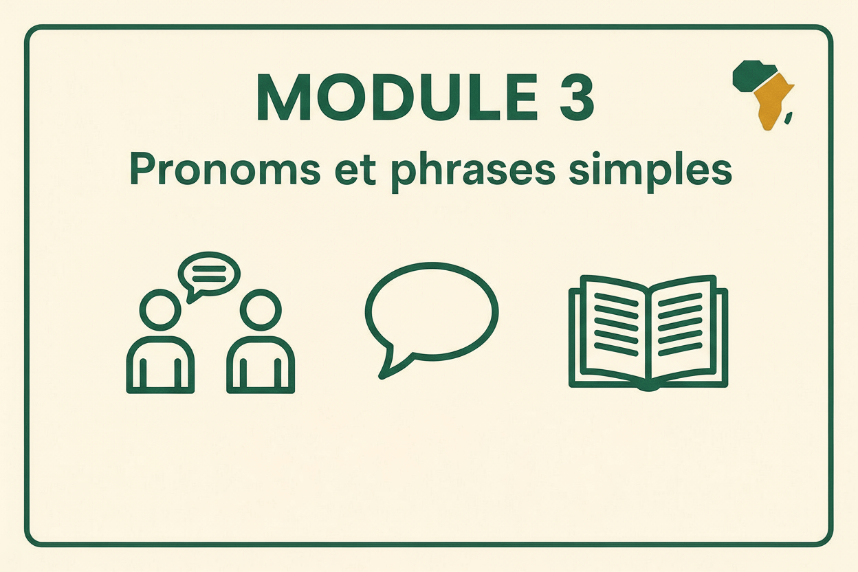 Tu vas apprendre à te présenter, saluer, poser des questions, répondre et construire des phrases naturelles.